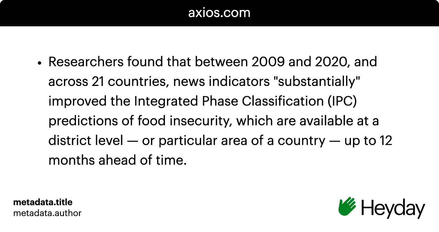 7/ The promise of AI for better covers enhancements in life for everyone, which is why we’re so intrigued by models that can predict food crises. Learn more at Axios >